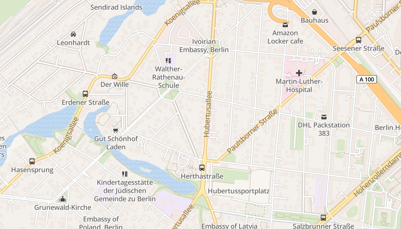 Das 1-Zimmer-Messe Apartment Berlin mit einem Gepäckraum und einem Restaurant befindet sich im Stadtviertel Charlottenburg-Wilmersdorf, in ca. 7 km Entfernung vom Deutschen Technikmuseum. Es liegt 5 Minuten Fußweg von der Bushaltestelle Herbertstrasse und etwa 15 Minuten zu Fuß vom Bahnhof S- Halensee entfernt.